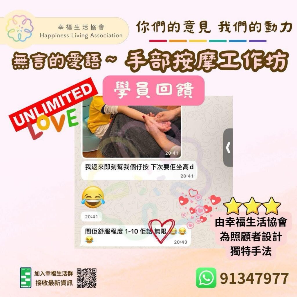 幸福生活協會專為照顧者設計既🤲手部按摩,無論你既對象係bb仔👶,小朋友👧🏻定👨🏼🦳老友記👵🏻,都一樣用得著💖讓愛透過雙手傳遞